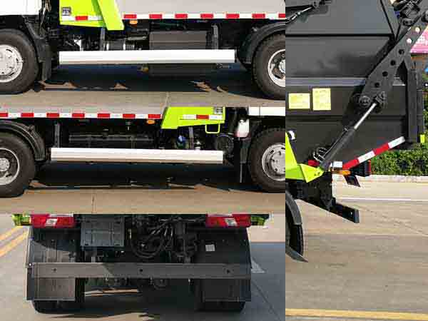 | 后伸195mm,該車用于垃圾轉運,主要專用裝置為箱體,壓縮系統(tǒng)。側防護材料為鋁合金,螺栓連接;后防護材料為Q235,焊接,截面尺寸:120mm×50mm,離地高度:450mm。ABS系統(tǒng)型號:VIE ABS-II,ABS系統(tǒng)生產廠家:上海萬捷汽車控制系統(tǒng)有限公司。發(fā)動機JX4D30A5H的油耗值為14.71L/100km。 |