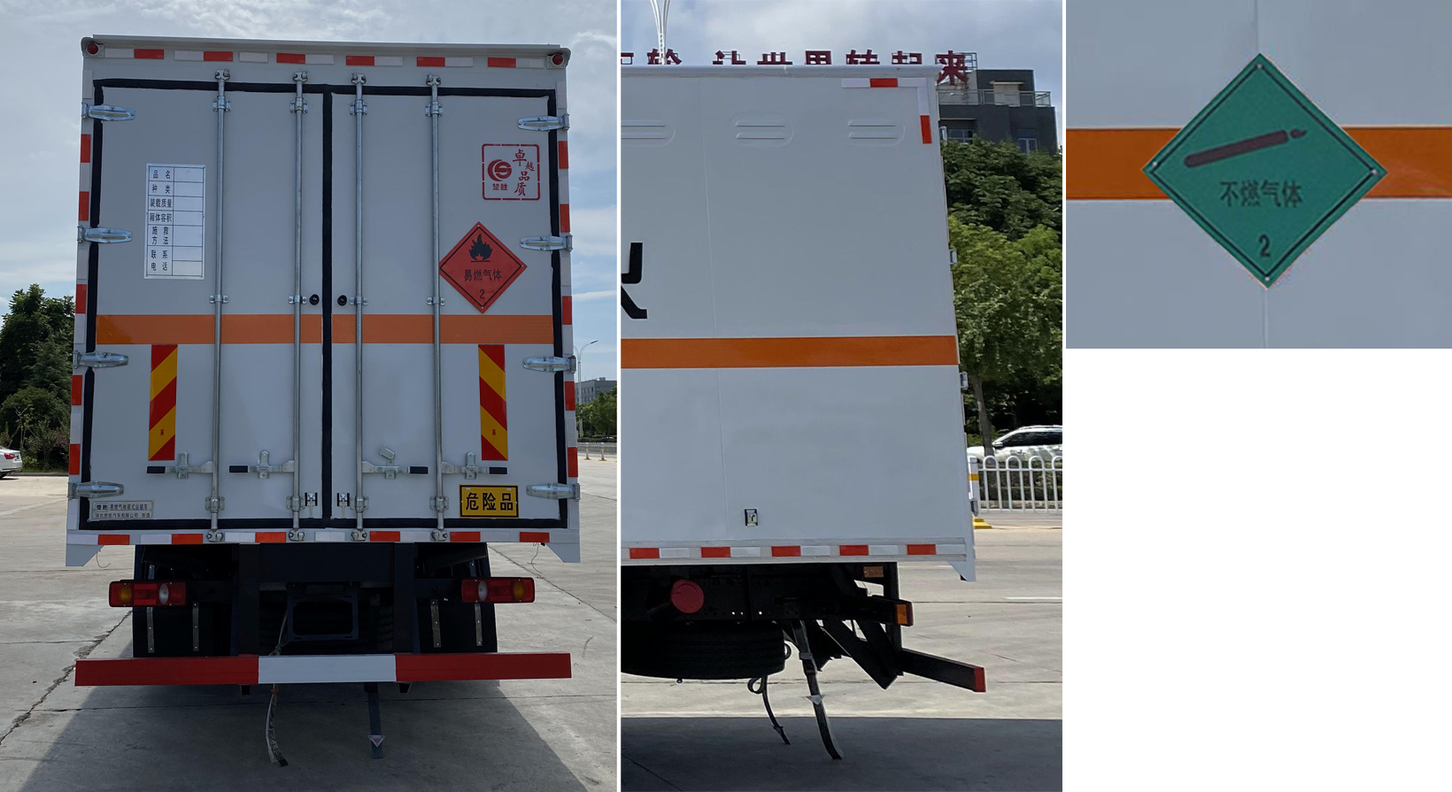 配置 | ABS型號:3631010-C2000;ABS生產(chǎn)企業(yè):東科克諾爾商用車制動系統(tǒng)(十堰)有限公司;安裝有限速裝置;限速裝置限速(km/h):80;安裝有具有衛(wèi)星定位功能的行駛記錄儀;選裝描述:隨底盤選裝駕駛室前面罩,選裝側(cè)窗玻璃;駕駛室頂部中間三個裝飾燈為選裝件;前霧燈為選裝件;駕駛室前臉擾流罩為選裝件。選裝后部無尾板。運輸具有**包裝的不可燃氣體,安裝2.2類危險品標識。該車型可選裝ETC車載裝置.;發(fā)動機/油耗值(L/100km)對應(yīng)關(guān)系為:B6.2NS6B210/26.5,DDi50E190-60/23.9;所用材料材質(zhì)、連接方式以及后部防護裝置的主要尺寸參數(shù)(斷面尺寸和離地高度):側(cè)/后防護材料為Q235,側(cè)防護螺栓連接,后防護焊接,截面尺寸120×60mm,下邊緣離地高490mm;尾板、上下坡道(或類似裝置)收起狀態(tài)的水平長度(mm):液壓升降尾板收起狀態(tài)水平長度為290mm,尾板質(zhì)量為550kg;車廂頂部封閉且不可開啟;運輸**容器(瓶)包裝的貨物;FL型車輛;危險貨物類項號:2.1,2.2;其他說明:該車為危險貨物運輸車.僅選用排氣管前置、前輪盤式制動及子午線輪胎的底盤,轉(zhuǎn)向輪安裝輪胎爆胎應(yīng)急防護裝置,后軸采用空氣懸架;廂體側(cè)面選裝開門型式及位置,選裝不帶側(cè)開門,選裝瓦楞板結(jié)構(gòu);廂體側(cè)面板選裝開百葉窗。 | ||