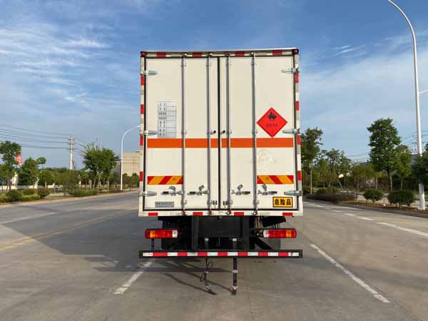 廂體配置:嚴(yán)格按照公告尺寸制作。外板采用優(yōu)質(zhì)冷軋鋼板帶百葉窗,內(nèi)飾為導(dǎo)電性能良好的鋁平板有透氣孔,矩形骨架結(jié)構(gòu)內(nèi)部填充防潮阻燃擠朔板,復(fù)合加鉚合工藝。廂體四周鋁合金包邊及包角,車廂底板鋪設(shè)防靜電膠皮,廂體前臉50公分高鋪設(shè)防靜電膠皮。后部設(shè)置對開門,可選裝側(cè)門位置,廂體內(nèi)部兩側(cè)安裝捆綁貨物的臥環(huán)。廂體內(nèi)部安裝氣體器及感應(yīng)防器及防盜報警器。車廂一周粘貼橙色放光帶,箱體粘貼 菱形告示牌,安全告示牌,危險品牌,箱體安裝示廓燈(前白后紅),拖地靜電帶。