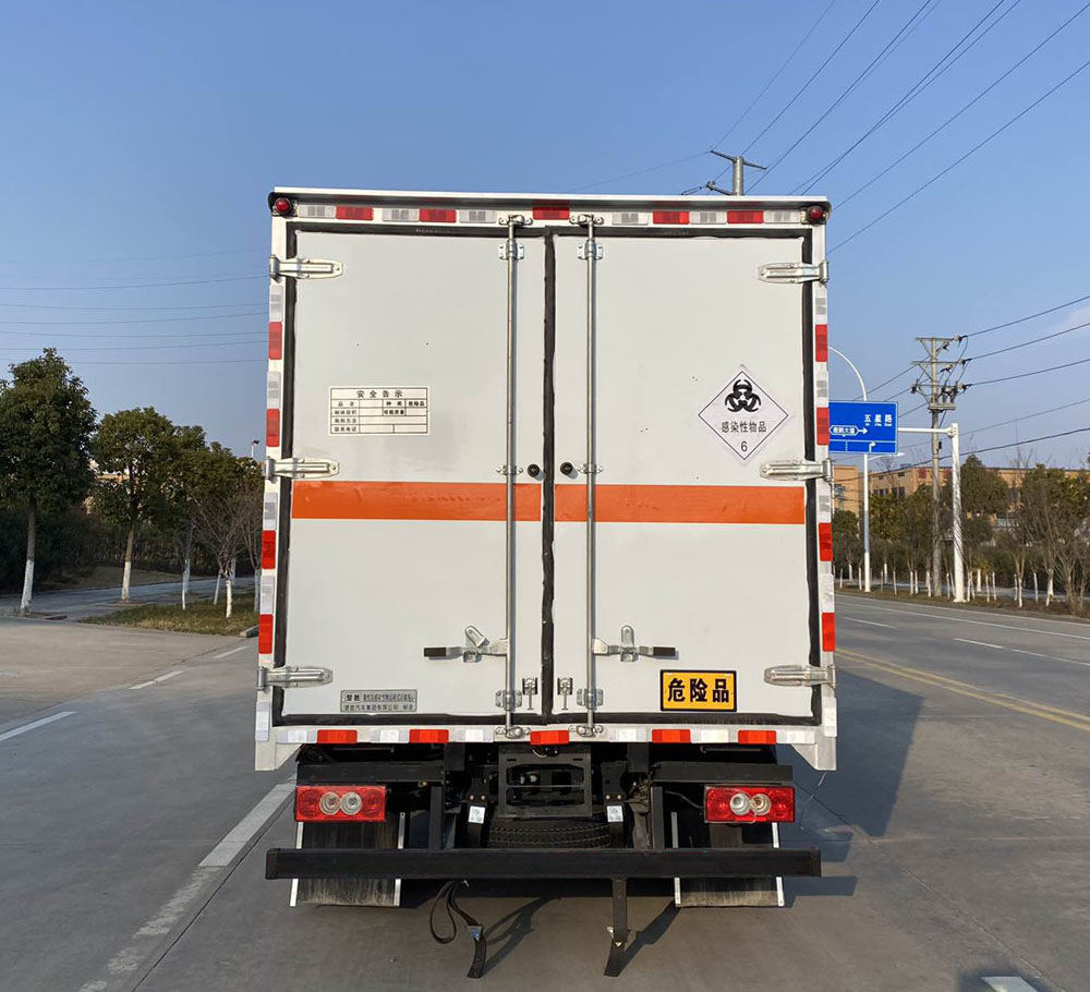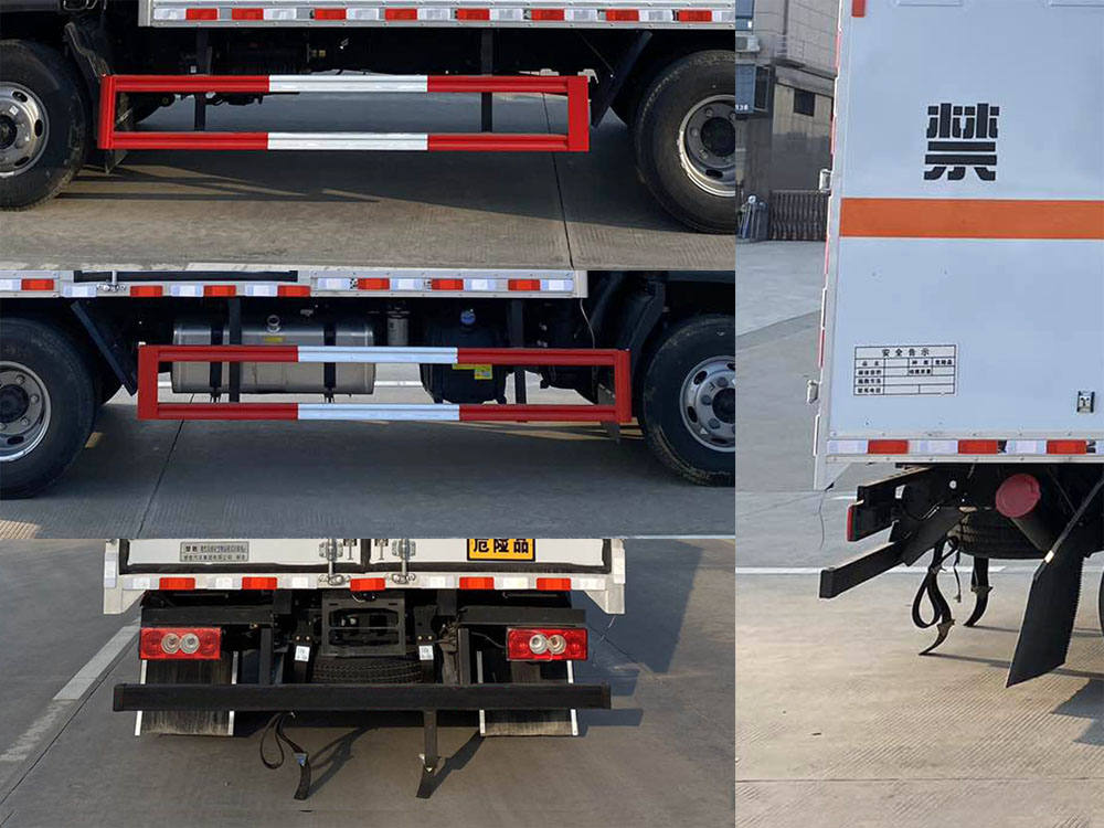 其它: | 1、該車適用于運輸危險品。廂體頂部封閉不可開啟。運輸具有獨立容器(瓶)包裝的物品,運送危險物品類項號:6.1,6.2。2、側(cè),后防護材料均為Q235,螺栓連接;后防護截面尺寸100×50mm,下邊緣離地高410mm。廂體側(cè)面選裝開門型式及位置,選裝不帶側(cè)開門,選裝瓦楞板結(jié)構(gòu);選裝百葉窗。3、隨底盤選裝排半駕駛室。僅選用排氣管前置、限速裝置(限速80km/h)、前輪盤式制動及子午線輪胎的底盤;轉(zhuǎn)向輪裝備輪胎爆胎應(yīng)急防護裝置。安裝帶衛(wèi)星定位功能的行駛記錄儀。ABS系統(tǒng)型號:ABS-VI.E;生產(chǎn)企業(yè):廣州瑞立科密汽車電子股份有限公司;ABS系統(tǒng)型號:ABS-E;生產(chǎn)企業(yè):威伯科汽車控制系統(tǒng)(中國)有限公司;ABS系統(tǒng)型號:ABS8.8 ECU 24V,生產(chǎn)企業(yè):東科克諾爾商用車制動系統(tǒng)(十堰)有限公司;發(fā)動機/油耗值(L/100km)對應(yīng)關(guān)系為:CY4SK261/16.09,D30TCIF1/16.19,F2.8NS6B156/15.39,F3.8NS6B156/14.90??蛇x裝ETC車載裝置。 | ||